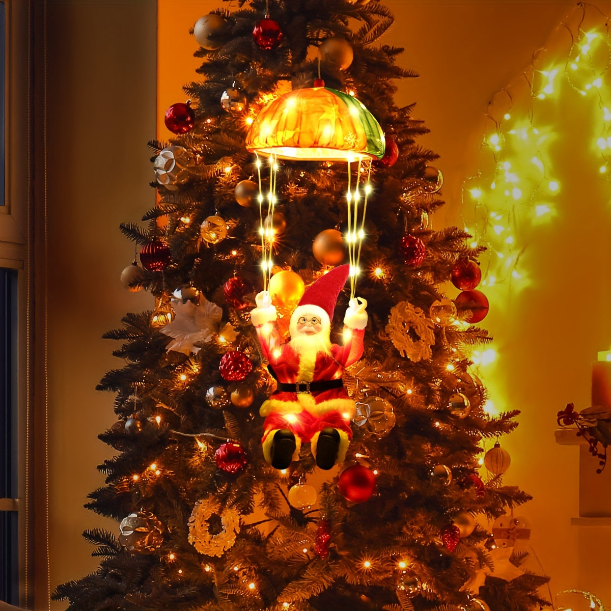 Festive Decor: Add A Touch Of Holiday Cheer With These Ornaments Featuring Parachute Santa Claus And LED Lights For A Warm, Inviting Glow.