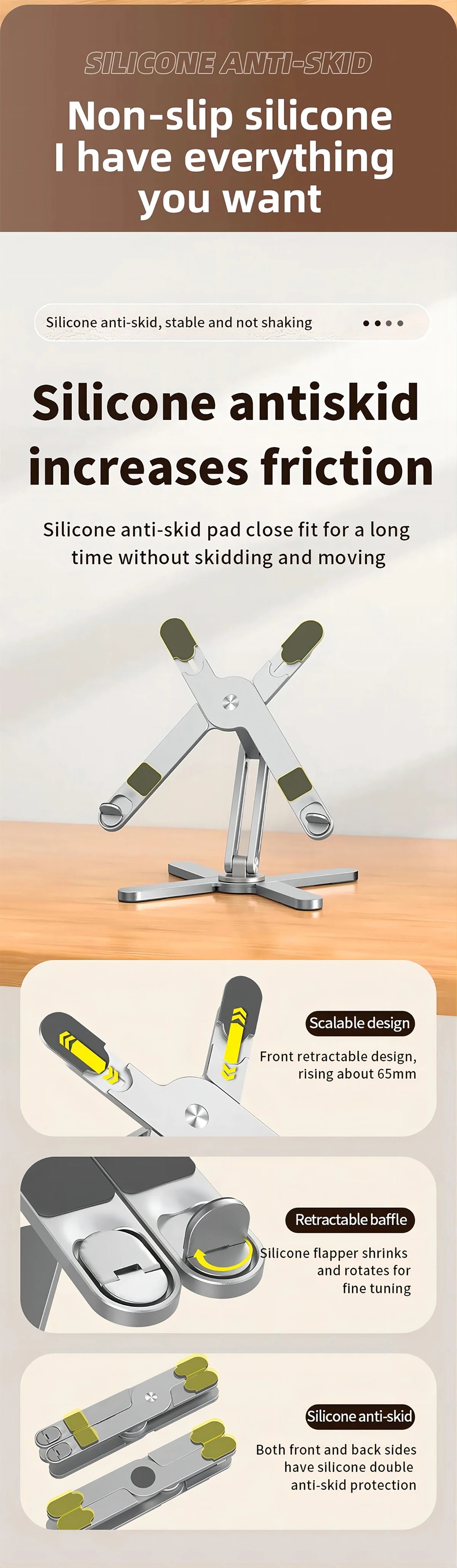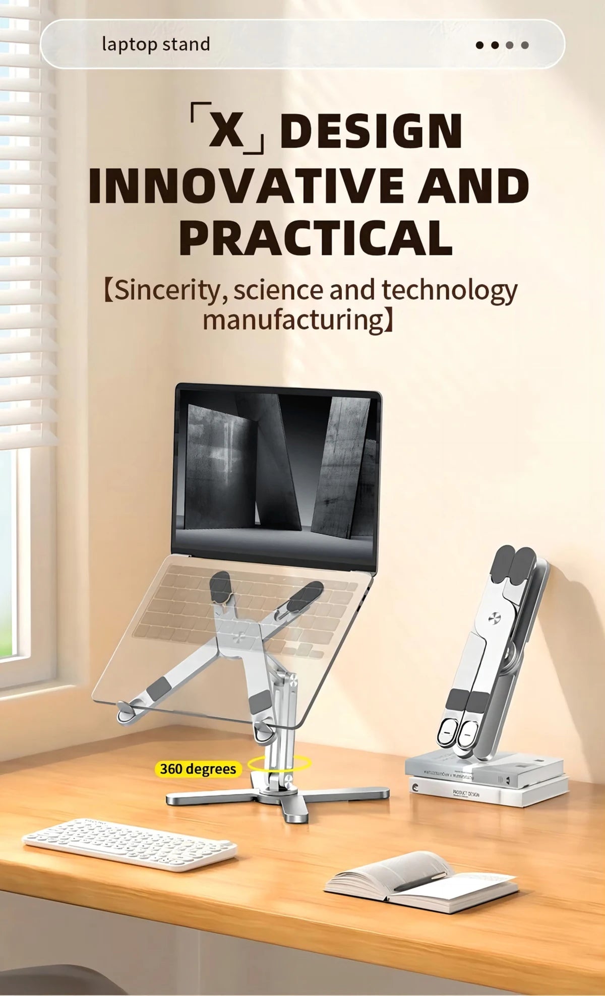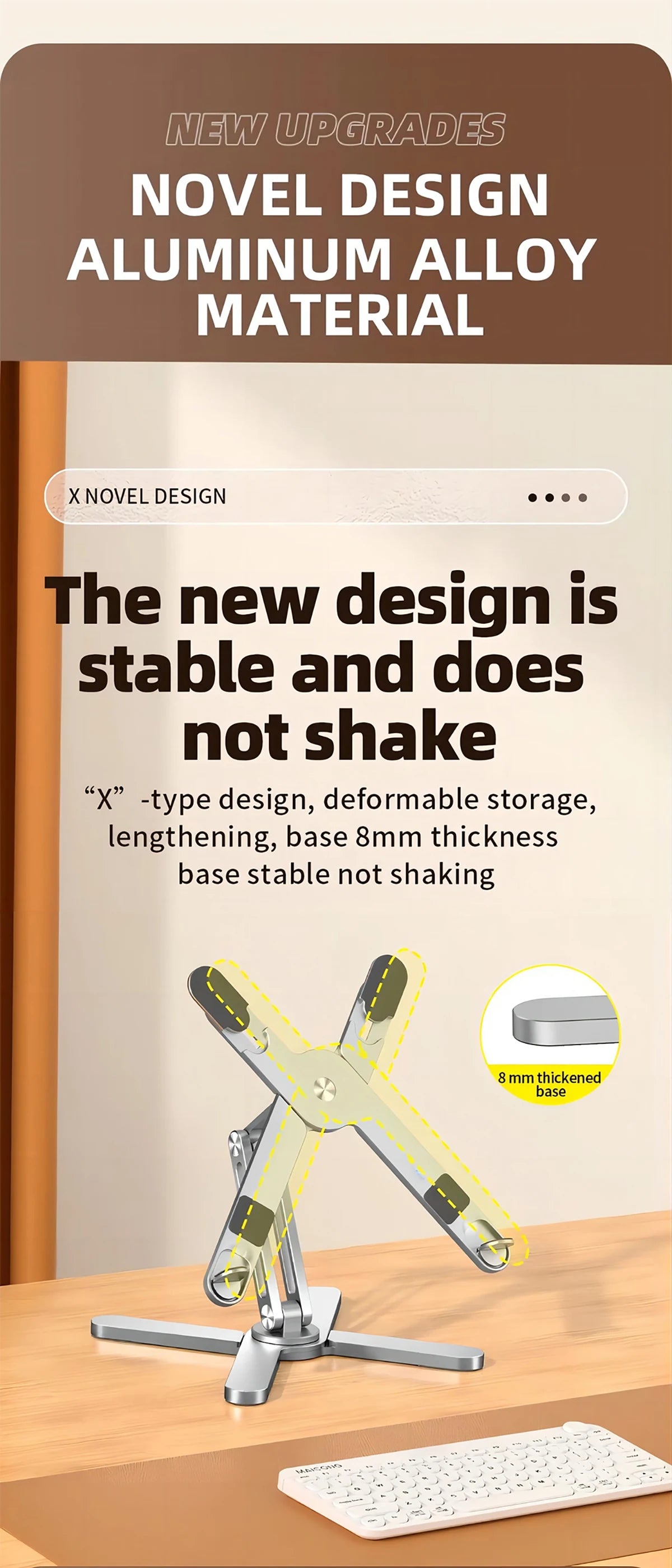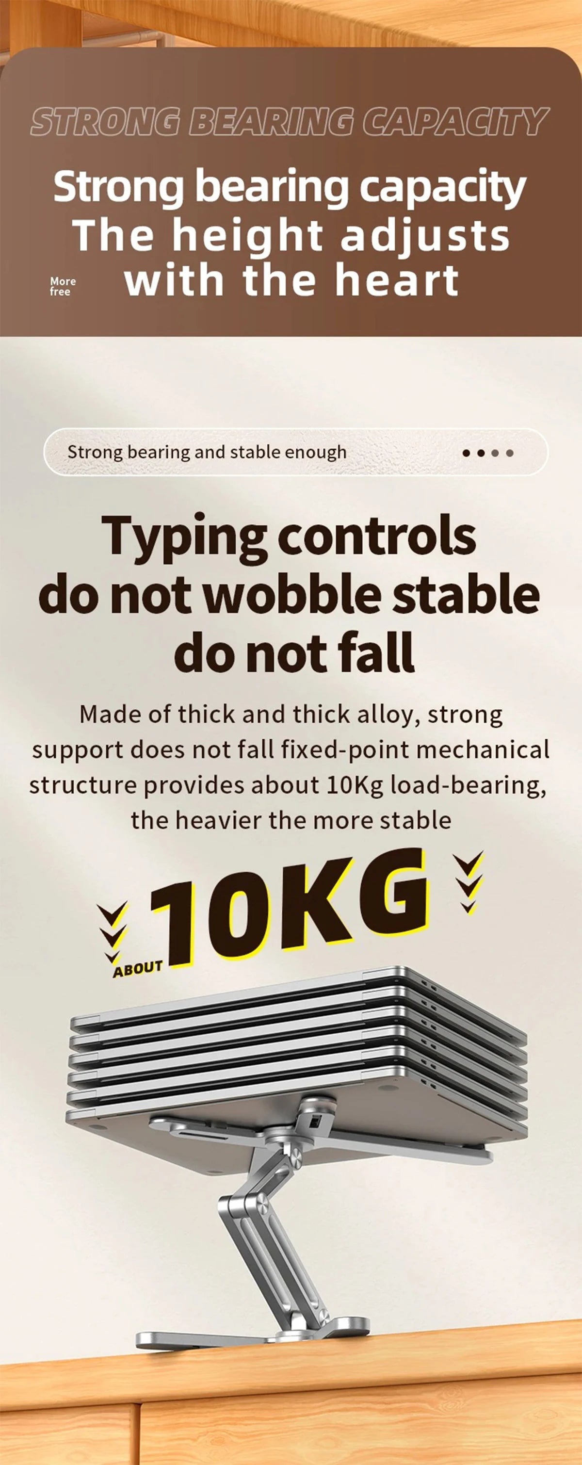 Aluminiul de calitate superioară, confortul ergonomic și designul portabil fac acest suport să iasă în evidență față de alții. Bucură-te de un stil de lucru eficient și elegant.