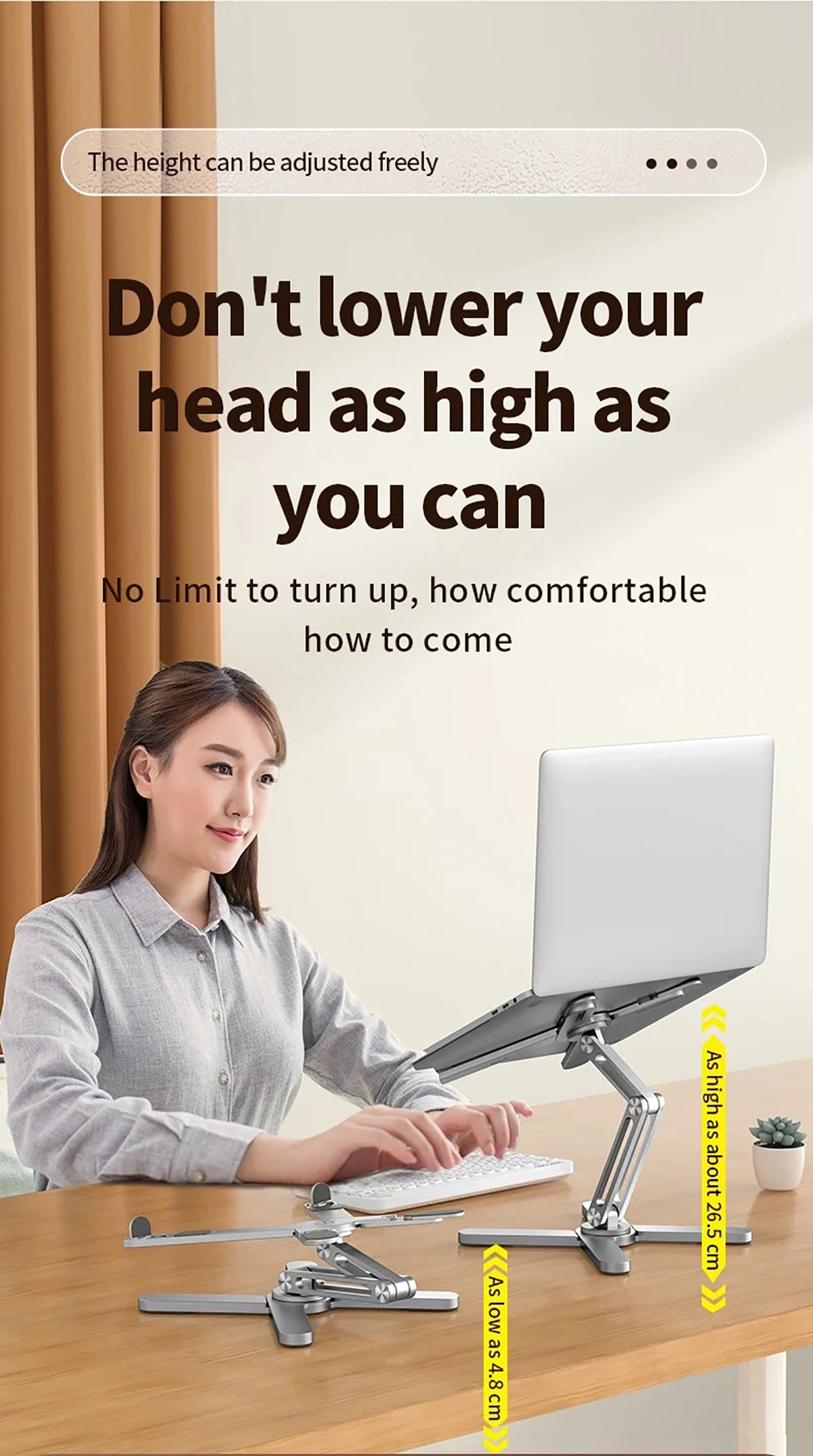 Cu suportul nostru, vei menține laptopul la nivelul ochilor, îmbunătățind postura și reducând tensiunea din spate și gât. Bucură-te de confort maxim în fiecare zi.