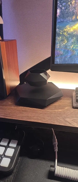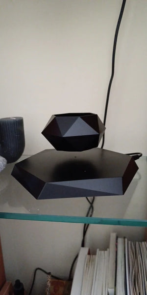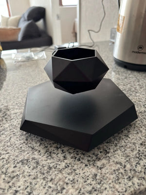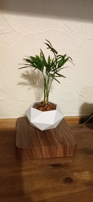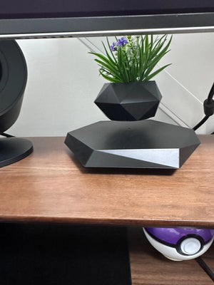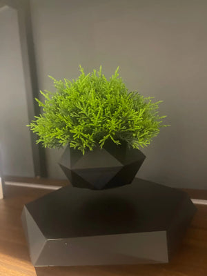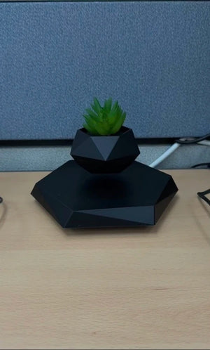 Ghiveciul folosește magnetismul pentru a pluti și a se roti, creând un efect vizual spectaculos fără a consuma multă energie.