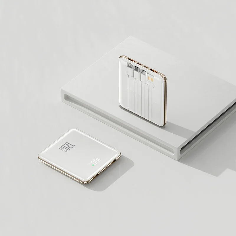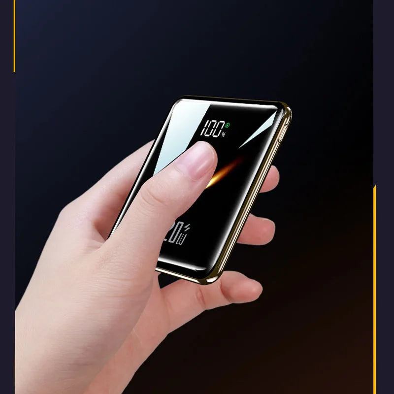 Power Bank 20000mAh Ultra Thin Portable Charger with Built-in Cable Large Capacity Super Fast Charging Powerbank for Smartphones