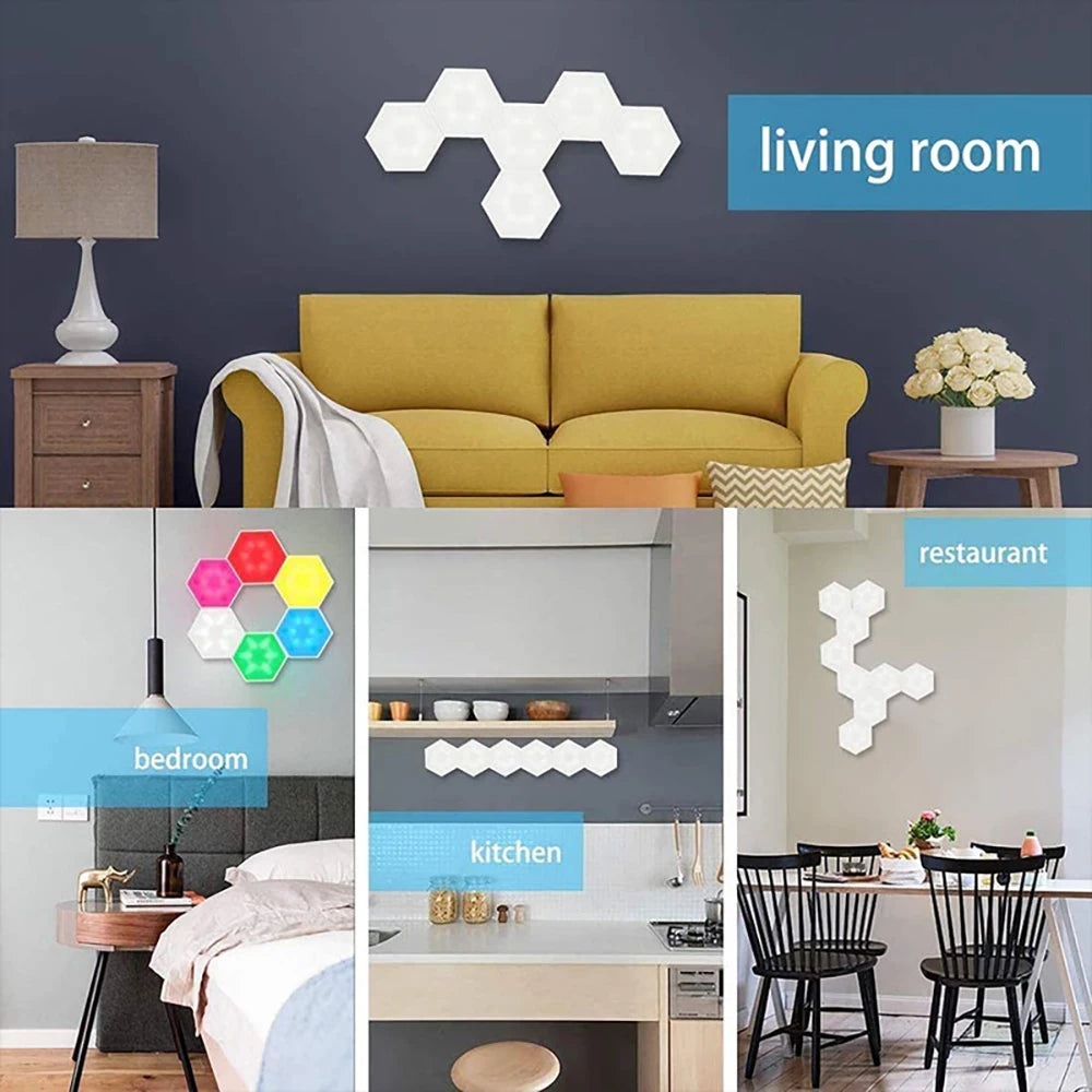 Cu luminile hexagonale cu control prin aplicație, poți schimba ambientul camerei tale într-o clipă. Culoarea și intensitatea pot fi ajustate pentru a se potrivi cu starea ta de spirit sau cu evenimentul special pe care îl organizezi.